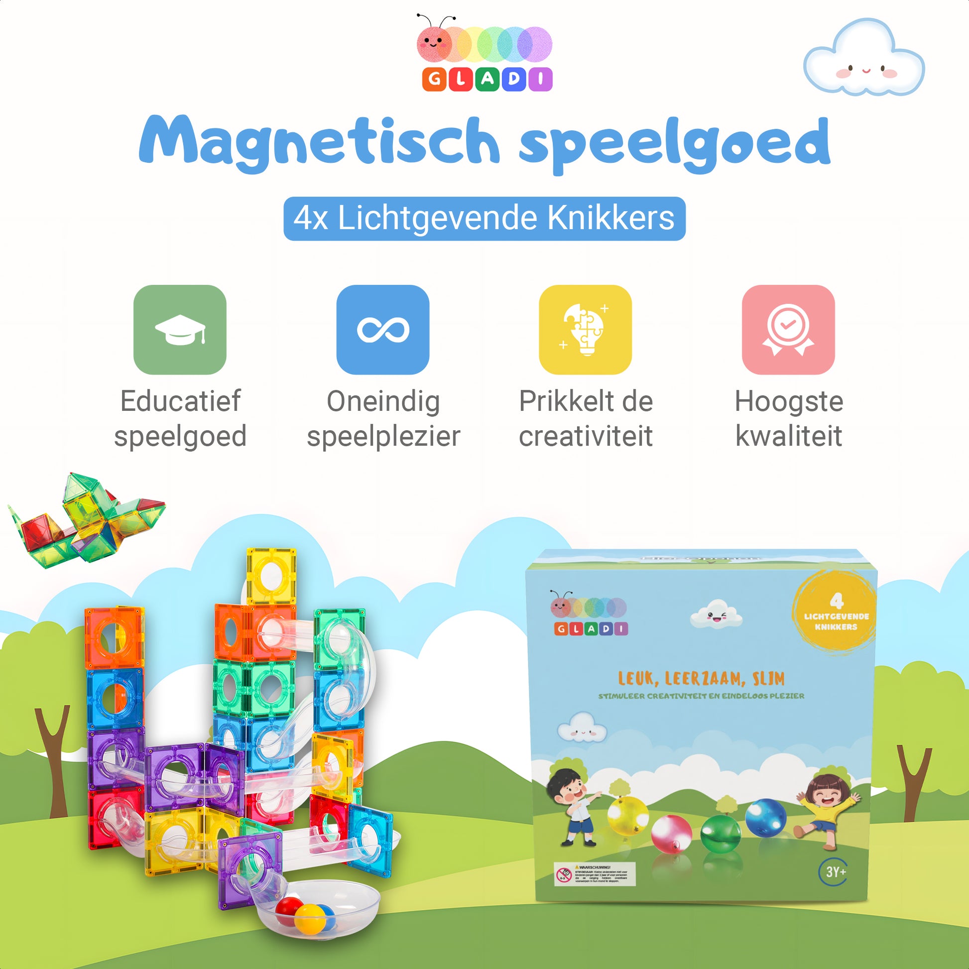 Stimuleer de creativiteit, motorische ontwikkeling en probleemoplossende vaardigheden van je kind. Gladi Tiles zijn het ideale magneet speelgoed voor leerzaam bouwplezier.